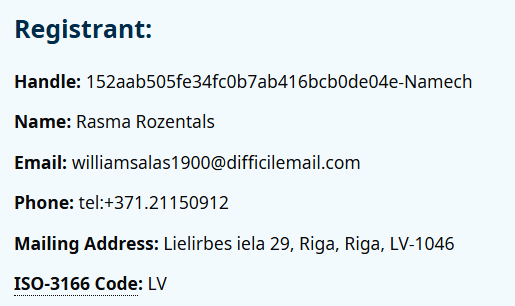 Am verificat, iar deținător este un individ din Letonia.Judecând după faptul că numele din email cu numele celui care a înregistrat, nu se potrivesc, este posibil să fie un nume fictiv. difficilemail[.]com este identificat ca un domeniu de e-mail de tip spam, utilizat frecvent pentru e-mailuri nesolicitate, tentative de phishing sau crearea de conturi false. Acest tip de email este folosit de cei care vor sa fie nedetectabili.