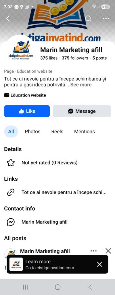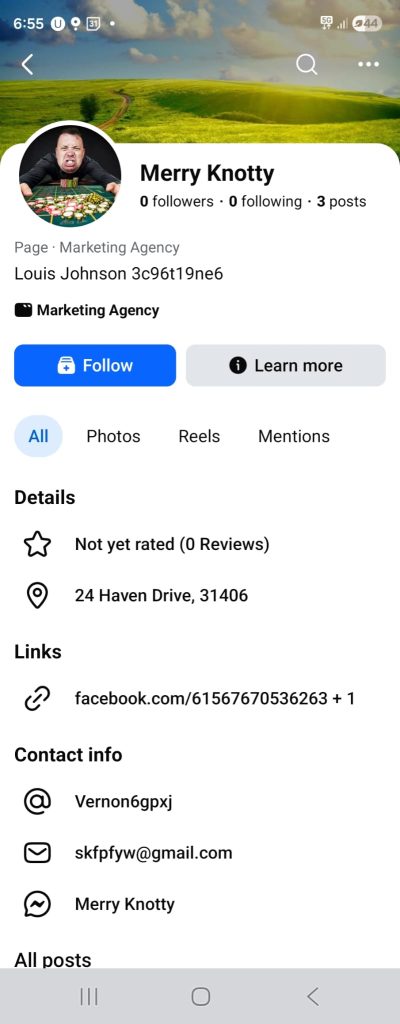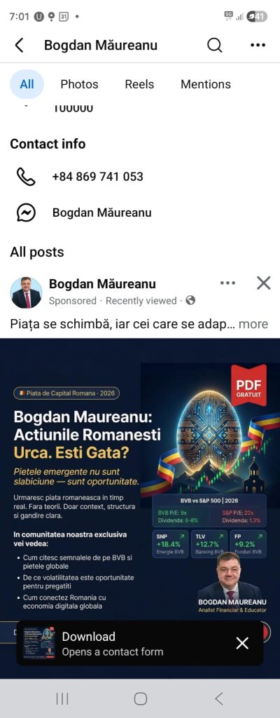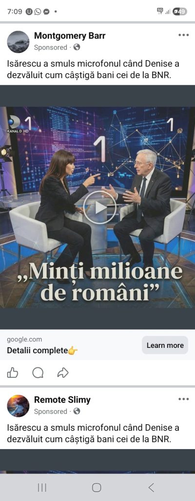 Inclusiv adresa de email pare una scrisă la întâmplare. Repet încă o dată că este foarte important să verificăm cine a postat, dacă este de încredere. Poate dura câteva secunde să facem această verificare. Iar dacă te gândești că nu știi cum să faci asta, imaginează-ți că verifici orice persoană de pe Facebook. Doar dai click pe nume și vei vedea detaliile sale. Poți vedea ce postează, cum comunică – aceste lucruri fiind suficiente ca să îți faci o idee. Dacă  observi o descriere scrisă la întâmplare, un nume care nu pare românesc sau o adresă care nu are legătură cu România, cel mai probabil, este un cont fals. Facebook (Meta) se luptă în fiecare zi cu fenomenul conturilor false, dar tehnicile fermelor de boți privind eludarea sistemelor sunt din ce în ce mai evoluate. De multe ori, atunci când cazi ântr-o capcană, este posibil să nu mai găsești contul care te-a păcălit pentru că a fost deja șters de Facebook. Actorii rău intenționați profită de însăși securitatea platformelor pentru a dispărea rapid și fără urme.