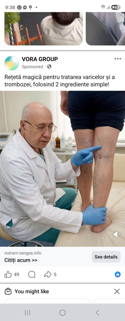 Vedem un clip cu un doctor care explică ceva ce nu se înțelege despre varice. Videoclipul are 2 secunde și se repetă la infinit. Totuși, pare că el tot explică acolo ceva. Așa că dai clikc să vezi despre ce este vorba. Din păcate, acest clip a produs victime, având 49 de likeuri și 5 distribuiri într-un timp foarte scurt. Cel mai probabil, astfel de clipuri sunt de ordinul sutelor.