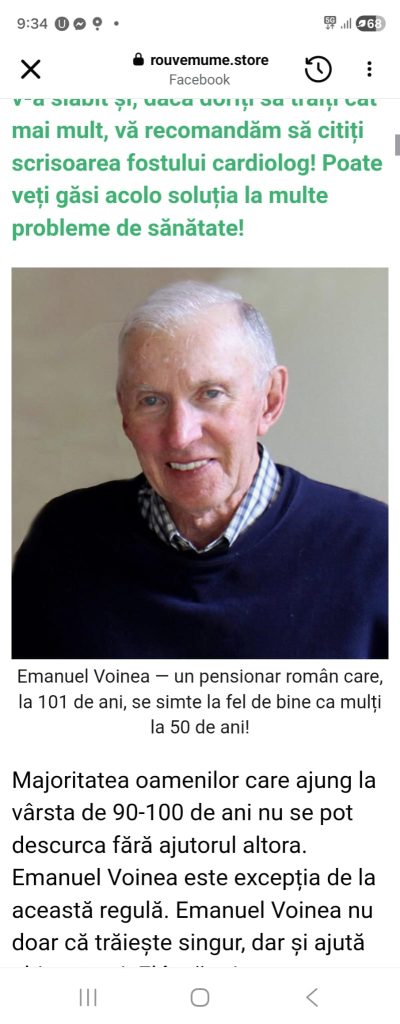 Această campanie creează impresia că un cardiolog care a trâit puțin peste 100 ani (adică 101) recomandă rețeta succesului longevității sale. Evident că este o scamatorie.