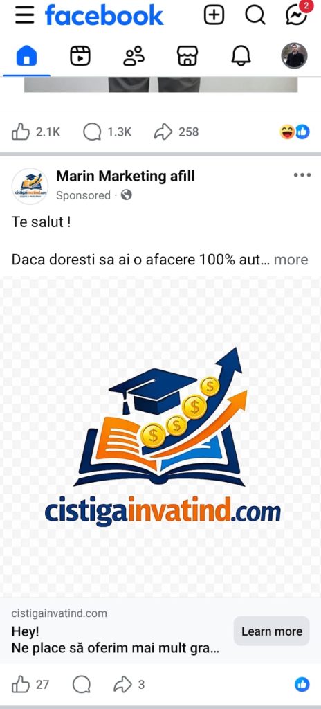 Se pare că aici este vorba de promisiunea unui marketing afiliat și justificarea ar fi că acele câștiguri apar de la ceilalți care bagă bani. Practic, tu devii unealta care trebuie să îi păcălească pe alții ca să faci bani. Așa funcționează de cele mai multe ori unele scheme de marketing afiliat atunci când este vorba de firme fantomă și nu numai! O astfel de campanie se bazează pe dorința oamenilor de a obșine un venit suplimentar sau de a eschide o „afacere”. Totu;i, trebuie să știi că nu există afaceri fără să produci ceva. Tot ceea ce presupune a te juca cu banii tăi sau ai altcuiva este cu siguranță necurat.