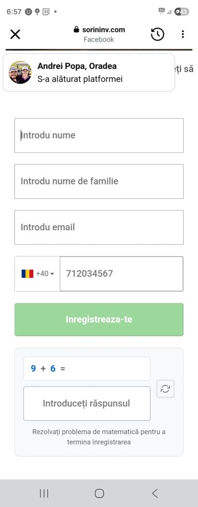 Aici se creează mai multă credibilitate, au pus un nume de persoană care s-ar fi alăturat platformei. Acele mesaje nu sunt adevărate deși pare că sunt în timp real. Butonul este verde tocmai pentru încredere. Codul de verificare de mai jos este făcut pentru a induce ideea de efort și de verificări suplimentare. Cu cât procesul este mai greu, vei crede că este mai real.