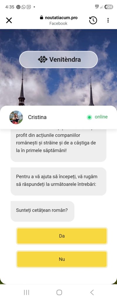 Nu pare o persoană reală, dar îmi este clar că aceasta țintește oamenii puțin trotilați. Am o vagă bănuială. Iată că nu doar bătrânii sunt încercați. Sunt testate diverse segmente de oameni, până când vor vedea în ce pici mai ușor.