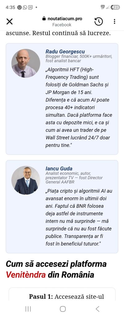 La un momentdat, mai jos, am ajuns la o zonă de testimoniale aparent venite de la ministrul finanțelor sau de la Iancu Guda despre o investiție sigură unde aceștia au fost sceptici la început, dar au avut câștiguri. Inclusiv de la presupuși utilizatori. Păreau că sunt sute de comentarii.